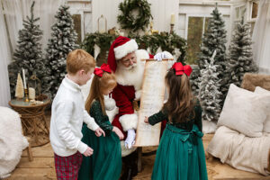 Bring your children that love Santa to share their Christmas list, favorite book, or ask Santa anything you have wondered about the North Pole! Enjoy a beautiful set up – 15 minutes!